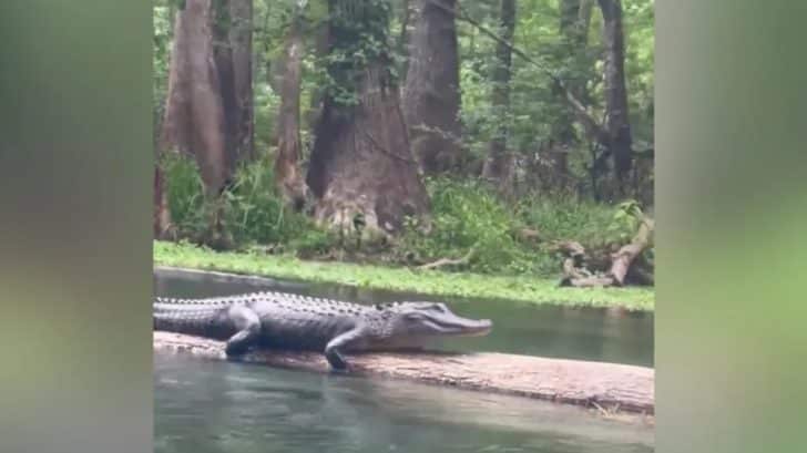 I’ve seen some pretty wild things in my time in the great outdoors, but this takes the cake. The woman in the video is heard exclaiming, “I’ve never seen a gator on the Ichetucknee ever!”