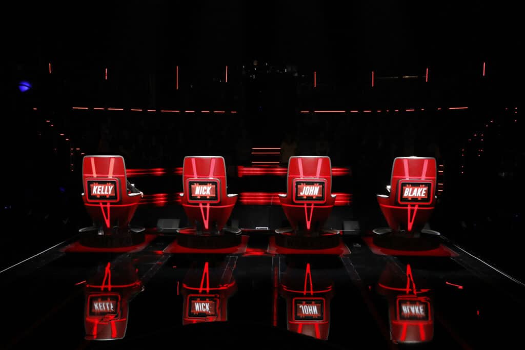 The coaches’ stately red chairs are vital to the process of the show. Each chair is equipped with a main “turn” button, as well as three additional buttons used to block another coach from claiming a contestant. Each coach gets one block per season.
