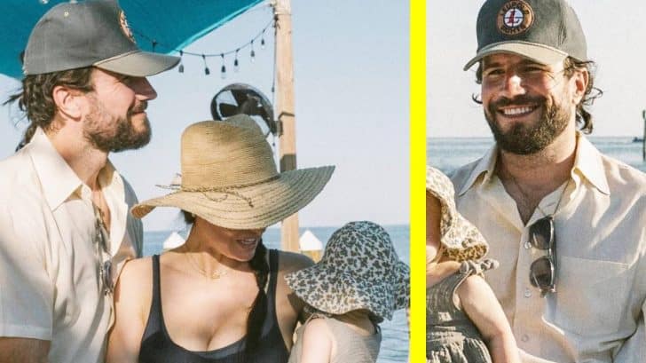 The next photo was of him and wife Hannah Lee in the water with Lucy. It appears they are opening a shell and showing Lucy what was inside! Next up is a photo of Hunt standing with a fishing rod on the dock, followed by another cute snapshot of Sam and Lucy on dry land. This photo really showed off Lucy’s gorgeous blue eyes!