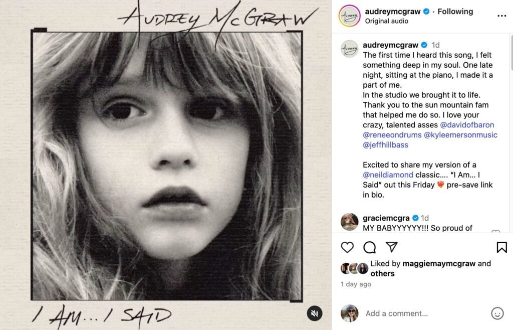 On May 12, Audrey revealed that she would be releasing her very first single, a cover of Neil Diamond’s “I Am…I Said.”