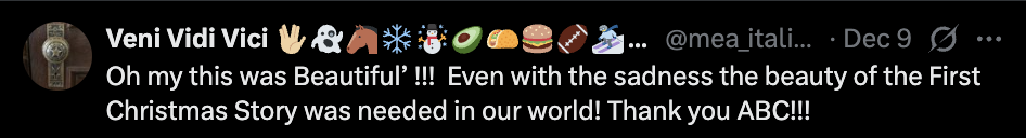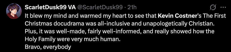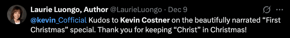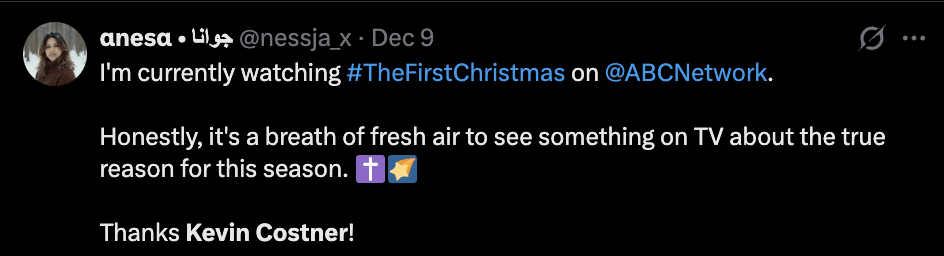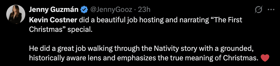 Following the premiere of Kevin Costner Presents: The First Christmas, viewers took to social media to express their thoughts on the show and Kevin’s public profession of faith. The response was overwhelmingly positive, with plenty of exclamations of “magnificent,” “profound,” and “wonderful.”